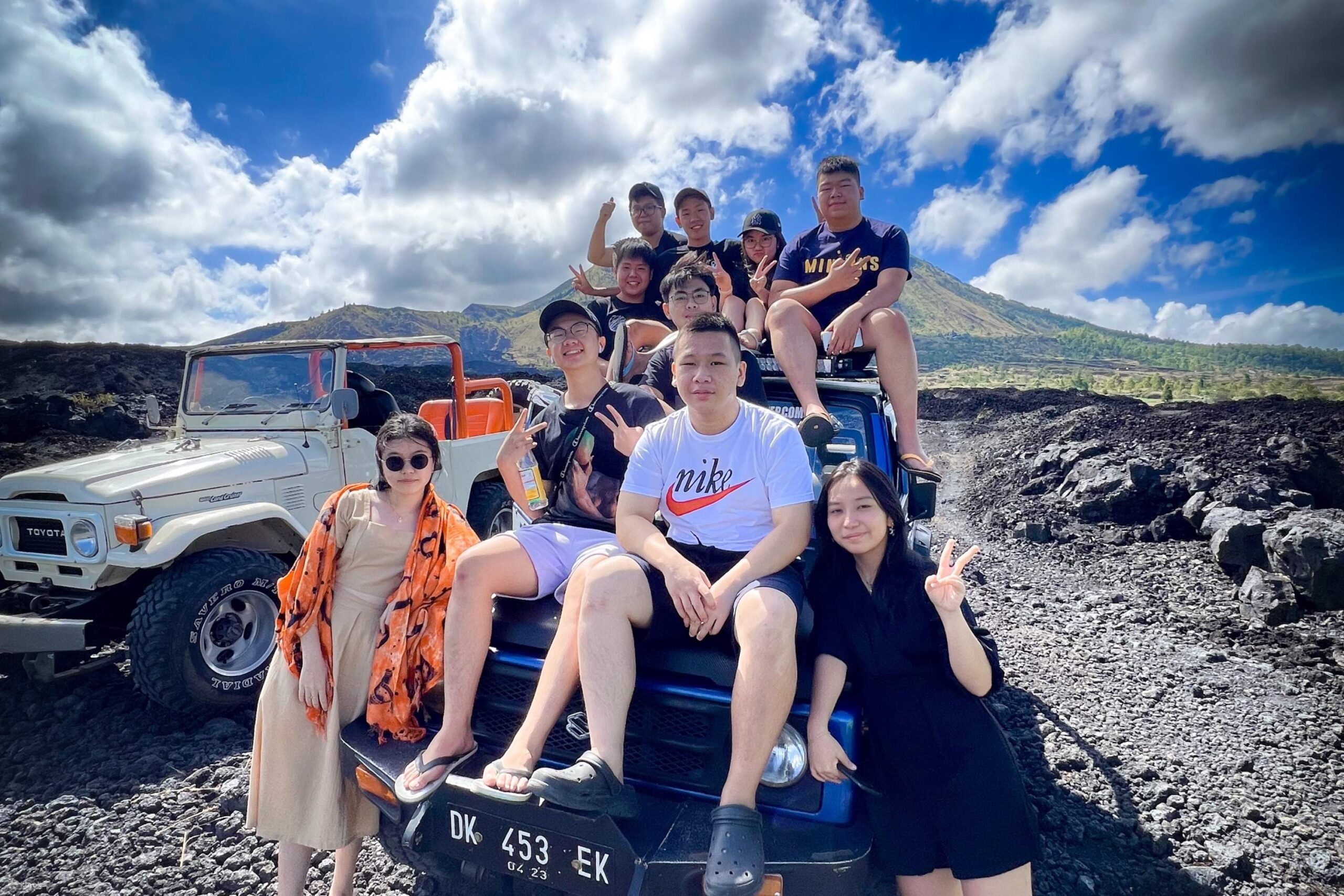 Destination = JEEF TRACKING MOUNT BATUR at 02:00 Am – 04:00 Am & see the Sunrise at 5:30 Am until 08:00 Am___Free Breakfast at the Restaurant view MOUNT BATUR__Rice TERRACE__Waterfall__UBUD SHOPPING Art Market__Back HOTEL.